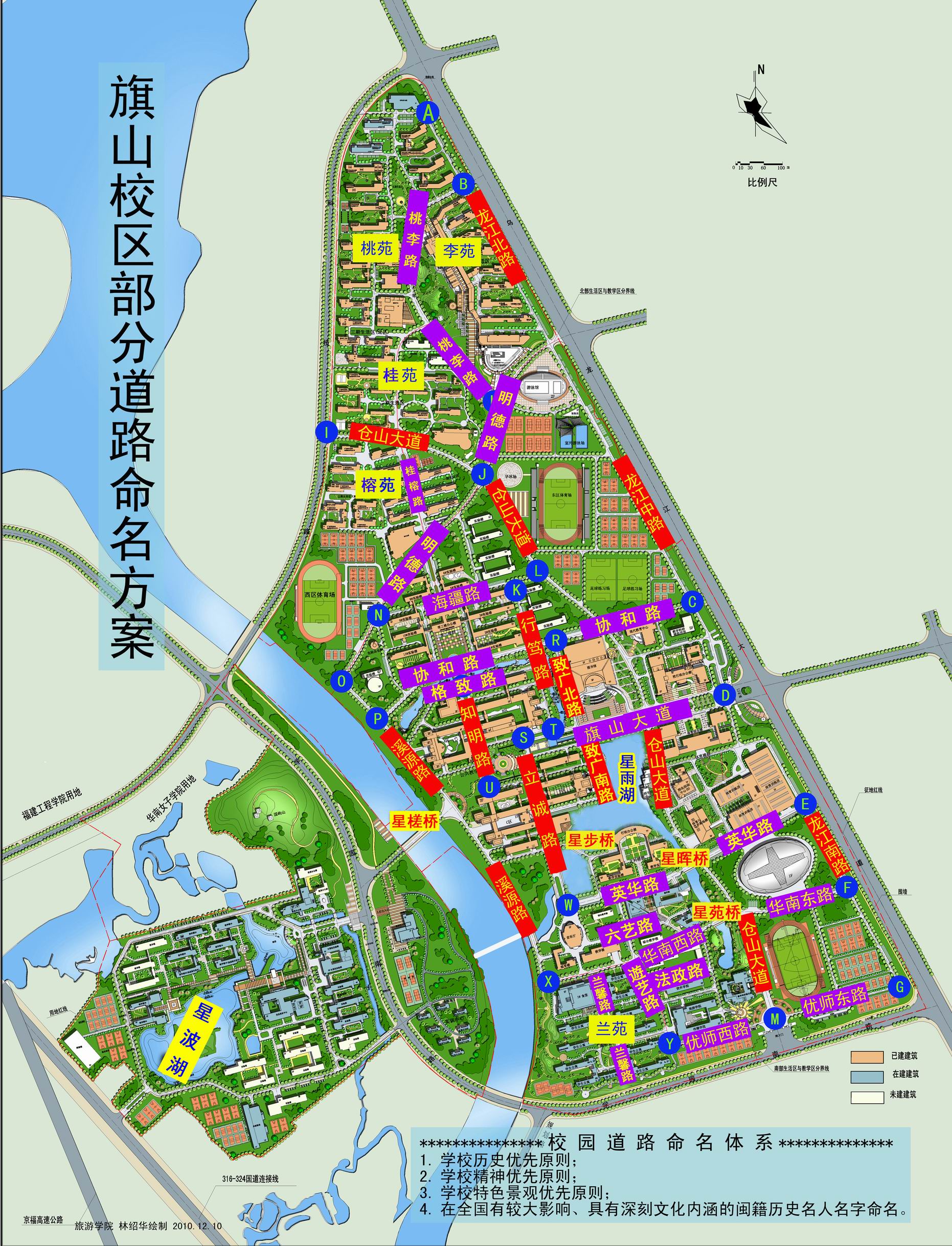 旗山校区部分道路、湖、桥、学生生活区命名方案