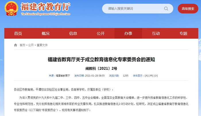 近日,福建省教育厅成立教育信息化专家委员会,华体会(中国)网络与数据中心许力教授受聘为主任委员,法学院林旭霞教授、教育学部杨宁副教授受聘为委员。