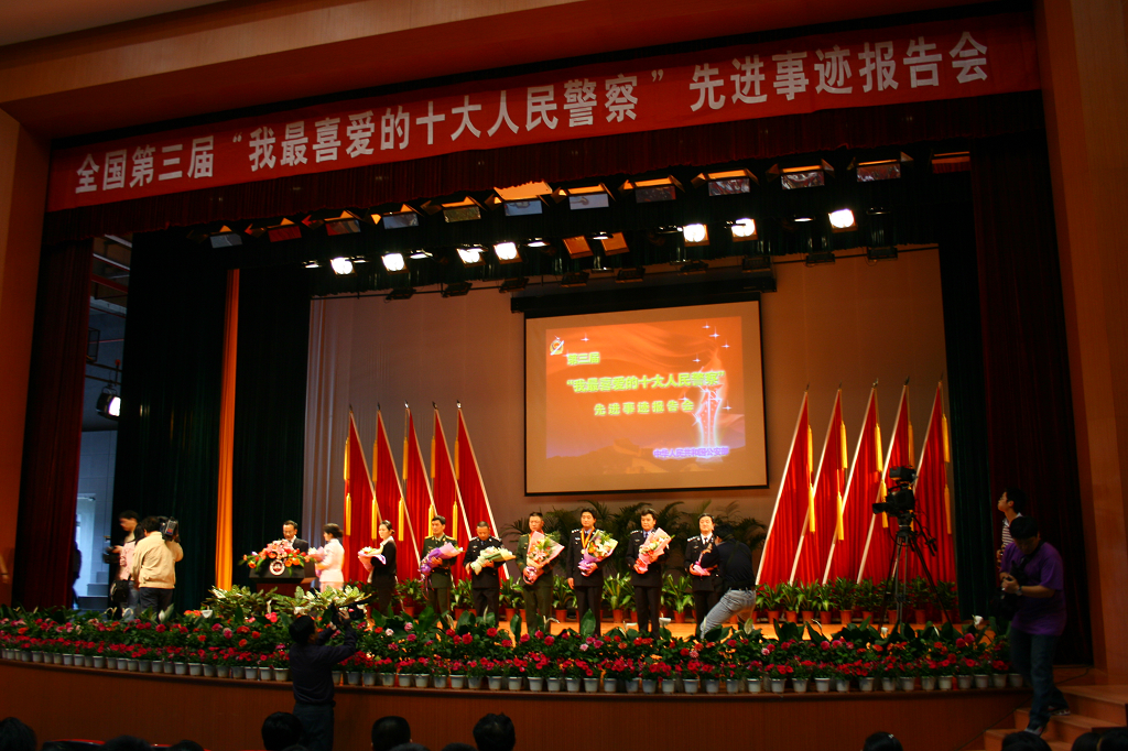 报告会上,四川省绵阳市公安局监管支队政委李跃进,云南省施甸县公安局副局长段松,河南省公安消防总队郑州市支队特勤大队副大队长李隆,广东省广州市公安局越秀分局便衣侦察大队长朱永章,云南省公安边防总队医院院长陈本善,福州市公安局原党委副书记、纪委书记、督察长盖起章的女儿盖方方,为全场观众作了一场既感人肺腑,又发人深思、给人力量的报告。他们中,有的在抗击“5.12”汶川大地震中英勇顽强,坚忍不拔,创造了一个又一个生命奇迹;有的在打击毒品犯罪的第一线出生入死,斗智斗勇,守护着我们宁静和谐的家园;有的在北京奥运安保中忘我工作,全力以赴,为“两个奥运”同样精采、同样平安作出了突出的贡献;有的在各项公安保卫工作和队伍建设过程中嫉恶如仇,无私无畏,赢得了广大人民群众的高度称誉。英雄的事迹激励着在场的每一名听众,热烈的掌声一次次响彻全场。