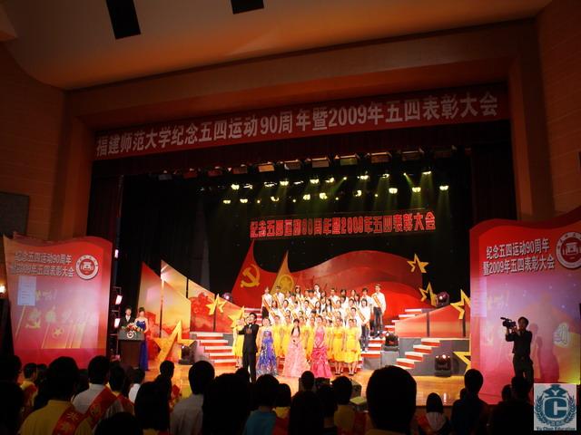 纪念五四运动90周年暨2009年五四表彰大会于5月4日下午在旗山校区大会堂隆重举行。团省委副书记郑震,团省委常委、学校部副部长陈涛,校领导张金栋、黄汉升、郑才木、郭绍生、李敏、许明,海西先进青年典型代表何方生、胡铃心、覃晓清、吴家朝、张栋斌,学校有关部处领导、专家教授代表、各学院分管学生工作负责人和团委书记、受表彰学生代表约1000人参加了大会。