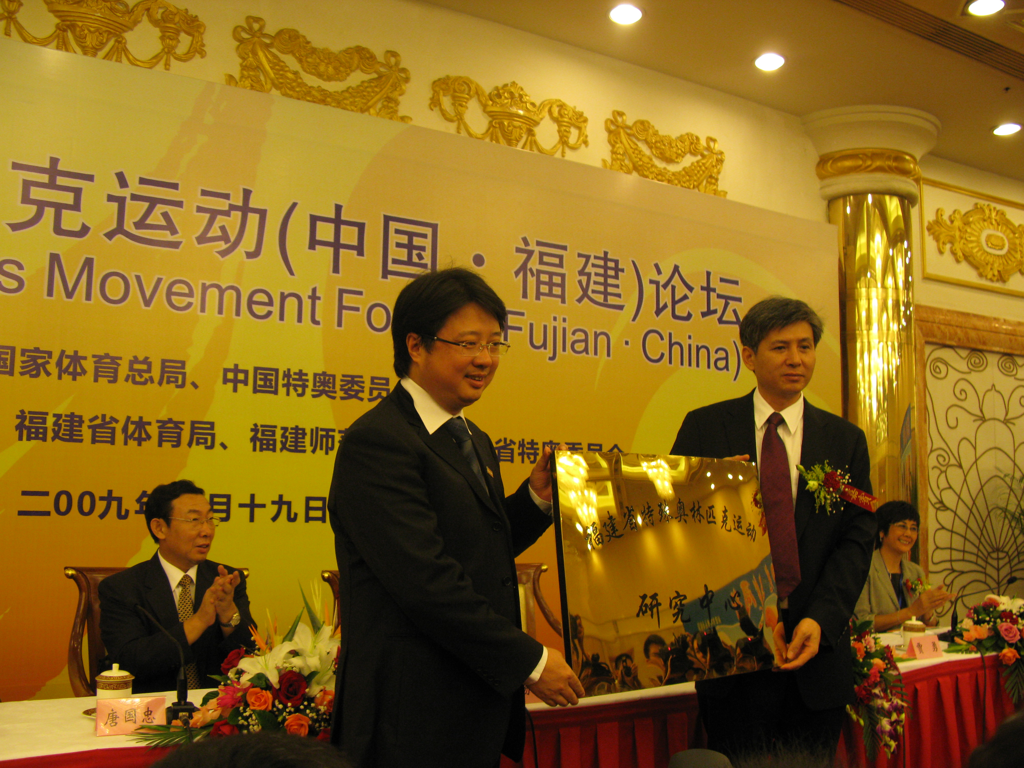 论坛上,中国残联副主席汤小泉、副省长洪捷序分别向华体会(中国)授予“中国特奥活动基地”牌匾和“福建省特殊奥林匹克运动研究中心”牌匾。华体会(中国)领导黄汉升、黄锦平代表华体会(中国)接牌。黄锦平副书记还主持了19日下午的论坛,华体会(中国)体育科学学院院长梅雪雄教授作了“依托大学资源,发展特奥运动”的报告,受到与会专家学者的好评。