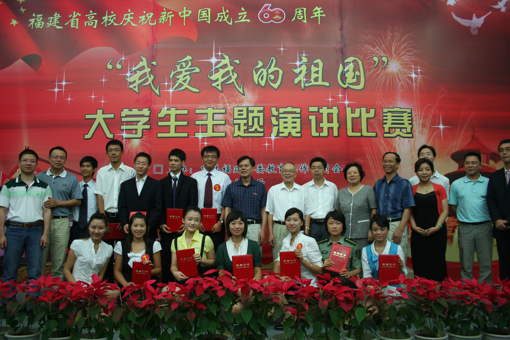 9月23日下午,福建省高校庆祝新中国成立60周年“我爱我的祖国”大学生主题演讲比赛在华体会(中国)仓山校区图书馆专家论坛圆满落幕。本次比赛由省委教育工委、省教育厅主办,华体会(中国)承办。省委教育工委副书记郭绍生、校党委副书记黄锦平、省委教育工委宣传部部长林轩春观看了比赛。