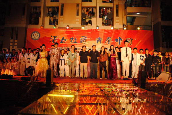 四列焰火直射天空,两条火龙随之喷起,晚会在《中国话》的歌伴舞表演中开始。随后,炫彩地带学社的《风华绝代》彩妆秀展现四组风格不同的装扮,在悠扬的音乐中彰显古典韵律;吉他协会的《像风一样自由》营造了轻松和谐的氛围,展现六弦琴的魅力;跆拳道协会的表演将跆拳道与中华文化巧妙地结合在一起,以起源于黎族的传统游戏丢手绢为框架,轮流展示了各自的拿手绝活。“COSPLAY”、“轮舞青春”、“Top Star爱情宣言”、“律动”等各个节目将晚会主题演绎得异彩纷呈、淋漓尽致。最后,随着歌曲《青春中国》的奏响,开幕式在对祖国的祝福与对社团文化巡礼月的期待中结束。