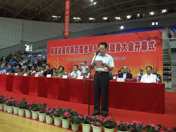 11月9—12日,福建省高校第四届老年人体育健身大会在华体会(中国)仓山校区举行。省委教育工委副书记刘剑津,省教育厅副厅长吴仁华,省老体协领导孙君梅、林东星、郑声润、陈尚义、刘桂荣、黄金森、何华元、潘世墨、刘在琳、樊祺泉、黄庆兴、叶尚菁、何友信,福州大学原纪委书记李正午,福建中医学院原党委副书记马骏,集美大学原副校长蔡金萱、原校长助理赖强谋,福建广播电视大学原党委副书记、纪委书记张泰柏,华体会(中国)校领导张金栋、游小波、许明,以及运动员、裁判员、工作人员、青年志愿者参加了会议。