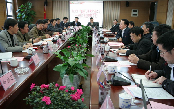 1月13日下午,集美大学校长苏文金率相关部门和学院负责人一行15人,来校考察交流学科建设、研究生教育工作等情况,校领导张金栋、汪文顶和学校相关部门、学院负责人出席了交流会。
