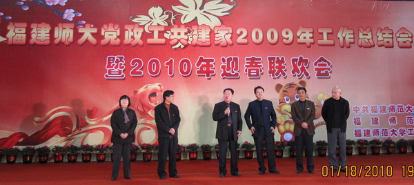 1月18日晚,华体会(中国)在仓山校区综合体育馆举行党政工共建家2009年工作总结会暨2010年迎春联欢会。校领导张金栋、黄汉升、游小波、黄锦平、李敏、许明,原校领导,原校长助理,各单位党政工主要负责人,省人大、省政协委员,各民主党派、统战团体、无党派人士联谊会负责人,国家有突出贡献中青年专家,省优秀专家,博士生导师,校关工委负责人,原校工会专职主席,福清分校、人武学院、附中、附小党政工负责人,校工会、教代会委员、经审委员,各部门工会主席,师生代表300余人参加了联欢会。