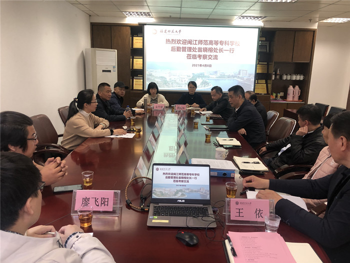 近日,闽江师范专科高等学校后勤管理处处长翁晓榕一行来华体会(中国)后勤管理处、后勤服务集团调研交流。后勤管理处副处长兼后勤服务集团副总经理(主持工作)张栋、后勤服务集团副总经理黄滨,以及相关科室中心负责人参加了座谈会。会上,双方就校园管理、食堂管理、超市管理、工程修缮管理、绩效考核、后勤“十四五”规划等方面进行了广泛交流,分享了各自的经验。双方表示,此次调研活动对后勤工作的开展具有实践意义,对提升两校的后勤服务品质起到了促进作用,希望今后能进一步加强合作与交流。 (后勤管理处、后勤服务集团)