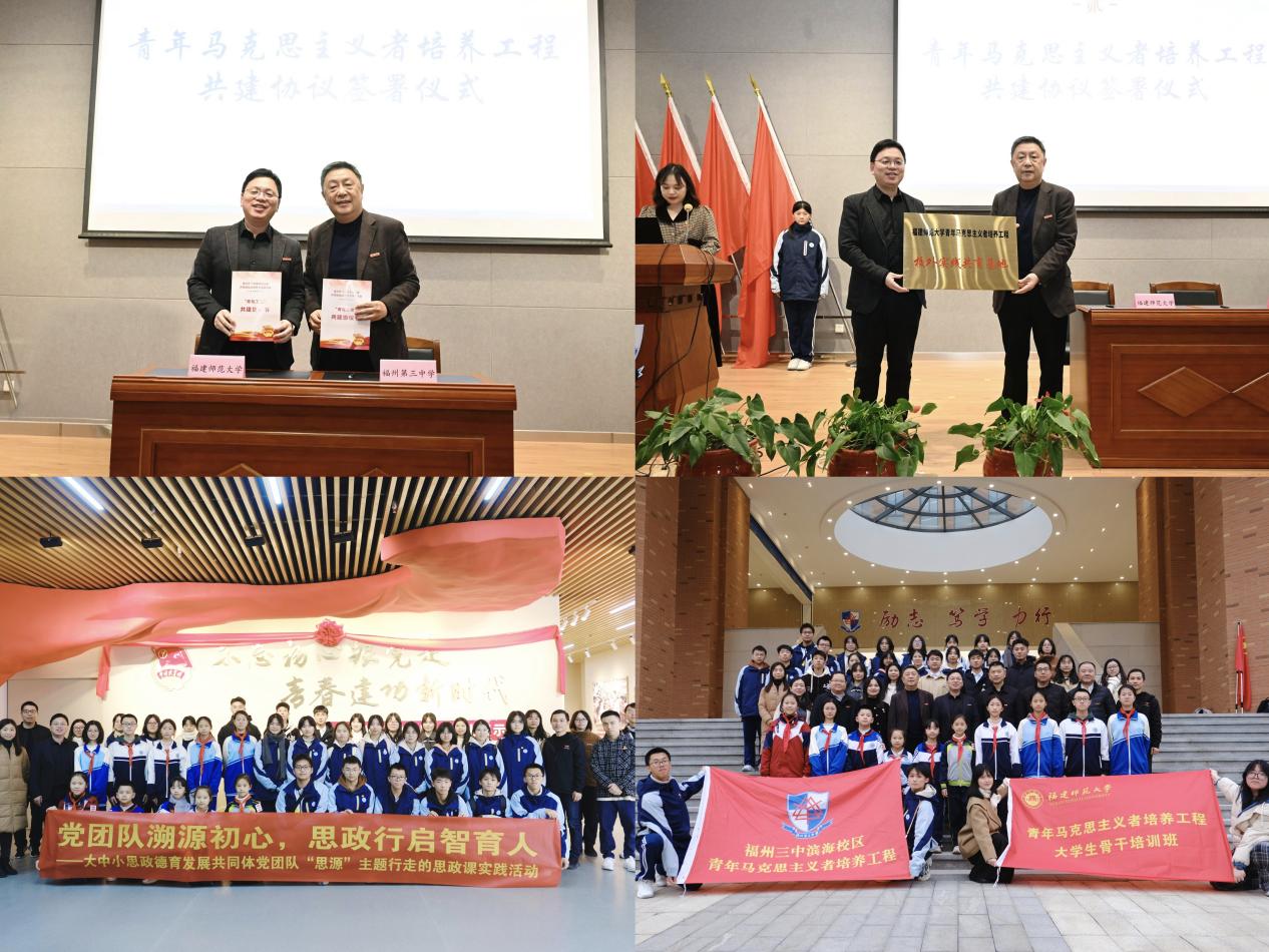 12月19日,家校社协同育人“教联体”成立仪式在福州三中滨海校区举行。校团委书记周延锋,福州新区行政审批局副局长王长旺,长乐区人民法院副院长叶凌,福州市教育局思政处处长廖少猛、团委书记林玉婷,福州三中党委书记连仁昌、校长张年雄以及党员教师、家长、学生代表参加活动。活动现场,周延锋和连仁昌签署共建协议,并为青年马克思主义者培养工程校外实践共育基地授牌。仪式结束后,大中小学师生代表参加了“红色引领·厚植情怀”行走的思政课系列研学活动和“职海导航·探索生涯”职业生涯指导分享会活动。(校团委)