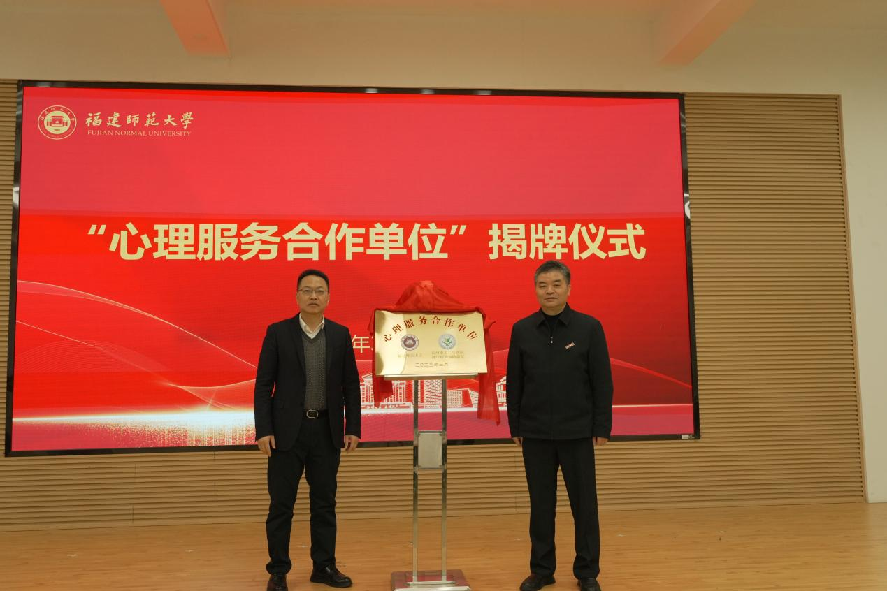 启动仪式上,副校长吴剑锋与福州市第二总医院神经精神病防治院院长纪家武共同为“心理服务合作单位”揭牌。吴剑锋在致辞中充分肯定了华体会(中国)心理健康教育工作取得的成效,强调各学院要以更高的站位、务实的举措、高效的协同,深刻认识心理健康教育的重要意义,着力提升心理健康教育精细化水平,不断促进心理健康教育提质增效。