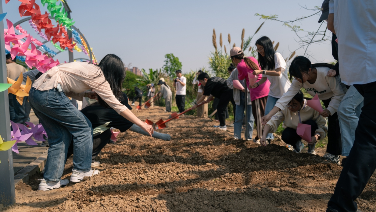 五一前夕,后勤管理处组织开展“种下一片花田”劳动节主题活动,将溪源江畔400多平方米的闲置土地精心打造成一片缤纷花田。活动吸引了150余名师生踊跃参与,师生们分工协作、默契配合,翻土松地,播撒花种,细心浇灌,共同奏响了一曲充满生机与活力的春日劳动乐章。该活动不仅鼓励师生共同打造美丽校园,也是学生爱校荣校的一次劳动实践。(后勤管理处 后勤服务集团)