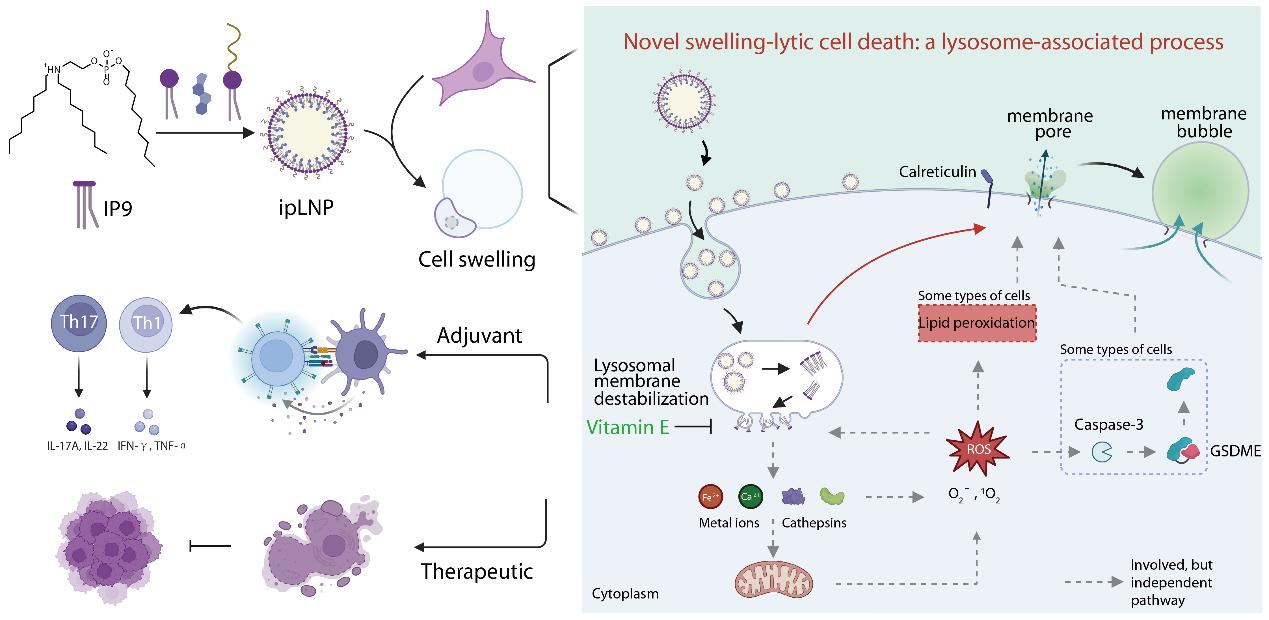 相关成果以Novel Swelling-Lytic Cell Death Triggered by Cargo-Free Ionizable Lipid Nanoparticles为题,近期发表于国际知名学术期刊《Advanced Science》(IF=14.1,一区TOP)。华体会·官方版网站登录入口为论文第一完成单位,华体会·官方版网站登录入口生命科学学院吴军军副教授、硕士生赵振男、硕士生吴鸿生以及泉州第一医院林思煌为论文的共同第一作者,华体会·官方版网站登录入口欧阳松应教授和泉州第一医院郑理玲教授为论文通讯作者。该研究得到了国家自然科学基金以及福建省自然科学基金等项目资助。