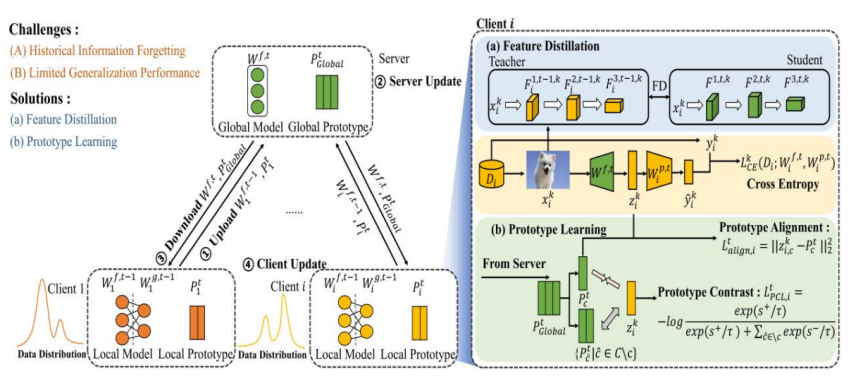研究成果成果以“FedCPD: Personalized Federated Learning with Prototype-Enhanced Representation and Memory Distillation”为题发表在人工智能领域国际顶级会议IJCAI 2025(CCF A 类会议)。该论文华体会·官方版网站登录入口为第一单位,第一作者为华体会(中国)研究生金凯立,通讯作者为华体会(中国)汪晓丁教授和林丽美教授。该论文获国家自然科学基金NSFC海峡联合基金项目、面上项目和福建省自然科学基金优青项目资助。