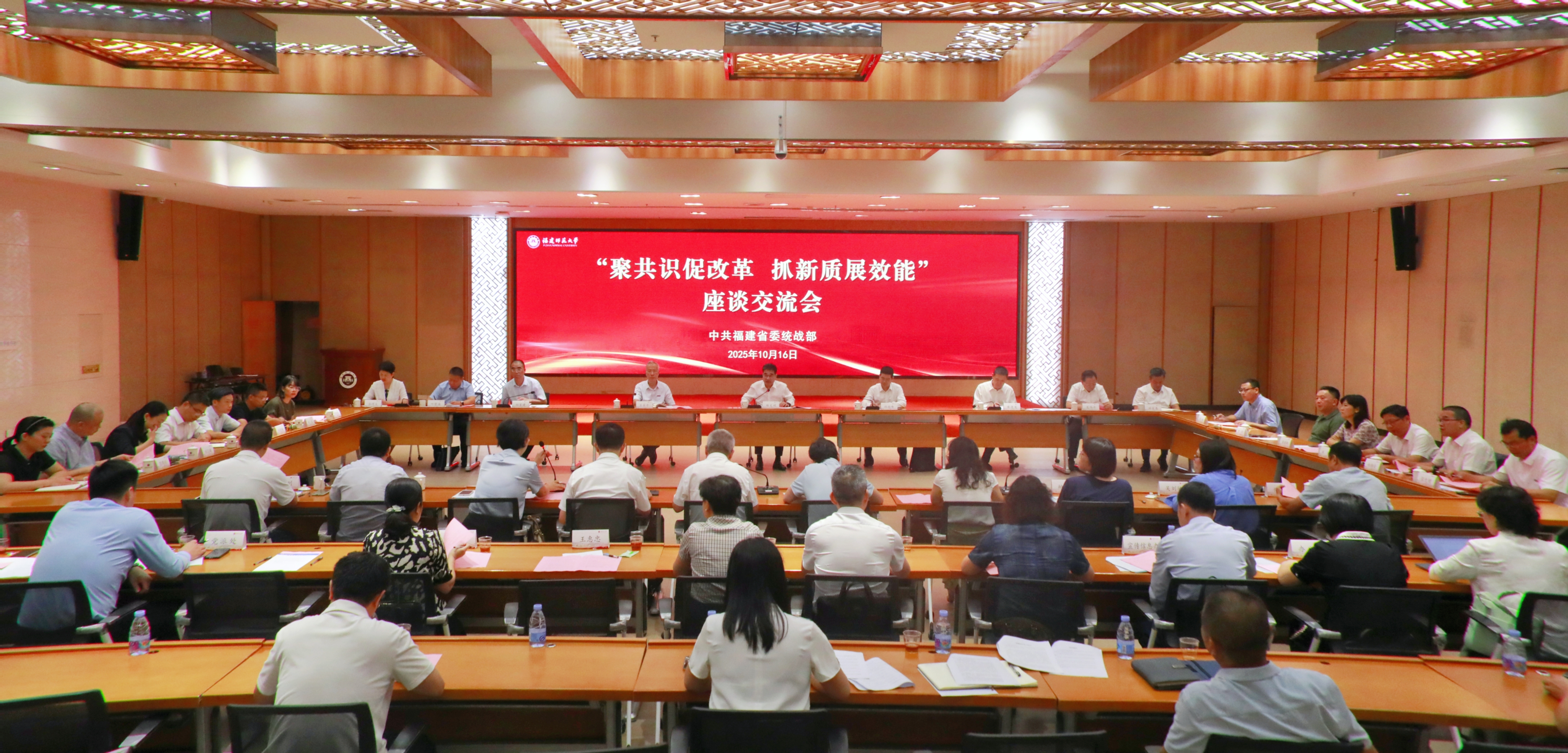 10月16日,省委统战部“聚共识促改革 抓新质展效能”座谈会在华体会(中国)旗山校区召开。省委常委、统战部部长林文斌主持并讲话。省委统战部常务副部长黄进发,各民主党派省委会有关负责同志,省教育厅、科技厅、人社厅、省创新研究院等单位有关负责同志和党外专家学者及民营企业代表,华体会(中国)校长郑家建、原校长王长平、校党委副书记陈晓红、副校长欧阳松应及相关同志参加。