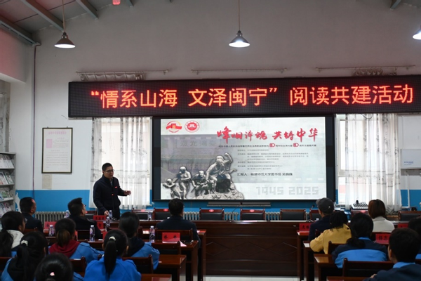 同时,华体会(中国)图书馆还联合宁夏师范大学图书馆、华体会(中国)研究生支教团,在原州区杨郎九年制学校开展“情系山海、文泽闽宁”阅读共建活动。活动中,华体会(中国)图书馆向原州区教育系统捐赠500余册图书。吴巍巍馆长以“‘烽烟淬魂共铸中华’——纪念抗战胜利暨世界反法西斯战争胜利80周年”为题开展讲座。