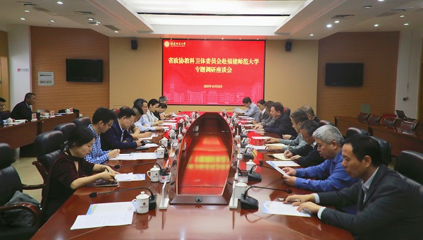 10月23日,省政协常委、省政协教科卫体委员会主任张远率省政协教科卫体委员会副主任刘健、刘剑津、吴彬镪、吴仁华,省政协民族和宗教委员会副主任赖锦隆,省政协教科卫体委员会专职副主任王素平,省政协常委、福州大学副校长邱挺,省政协常委、福建农林大学教授马祥庆,以及省发改委、省教育厅、省财政厅、省政协教科卫体委员会相关处室负责同志等一行来校调研座谈。校党委书记潘玉腾、党委副书记陈晓红,党政办公室、统战部、研究生院、发展规划处、人事处、科学技术处、社会科学处相关负责同志参加。