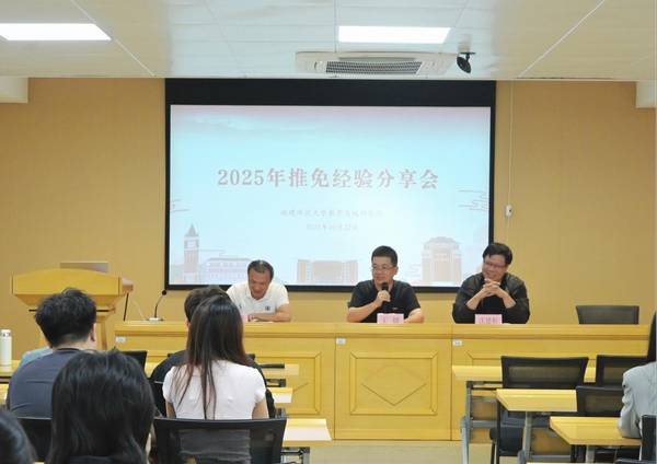 近日,数学与统计学院在理工南楼举办2025年推免经验分享会。院长王健、院党委副书记王尚鹏、副院长沈建和,2022级、2023级本科学生代表参加会议。