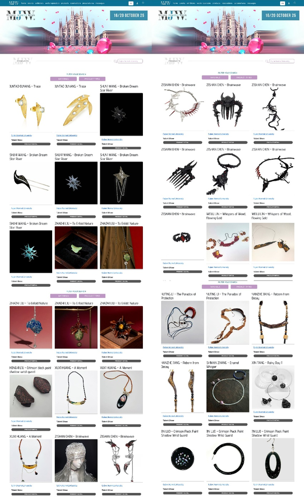 近日,米兰珠宝周相关活动在意大利举行,美术学院9位师生共31件系列作品入选米兰珠宝周Talent Show,并在官方平台精彩亮相。这是继华体会(中国)学生作品入选“第十一届伦敦工艺周中国国家馆”后又一次面向全球的文化展示与专业对话。近年来,美术学院持续深化人才培养新模式,推动教育教学与国际前沿趋势深度接轨,向世界展示中国新生代设计力量的创意锋芒和文化自信。(美术学院)
