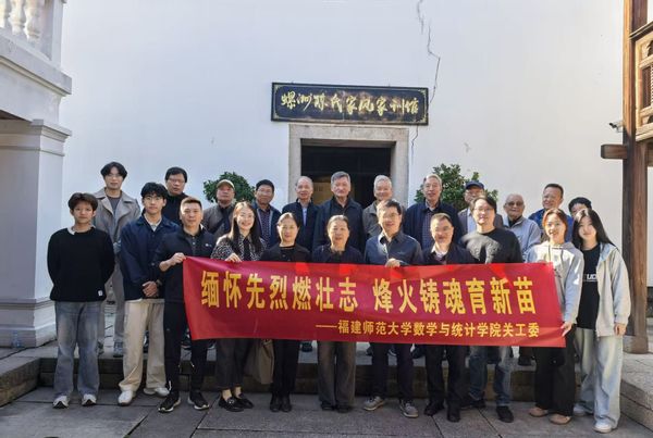 11月14日上午,数学与统计学院组织离退休教职工探访陈宝琛故居与吴石故居,开展“缅怀先烈燃壮志,烽火铸魂育新苗”主题活动。学院关工委主任刘静、学院党委书记程惠斌、院长王健、副院长沈建和、工会主席林昌露及师生代表30余人参加了活动。