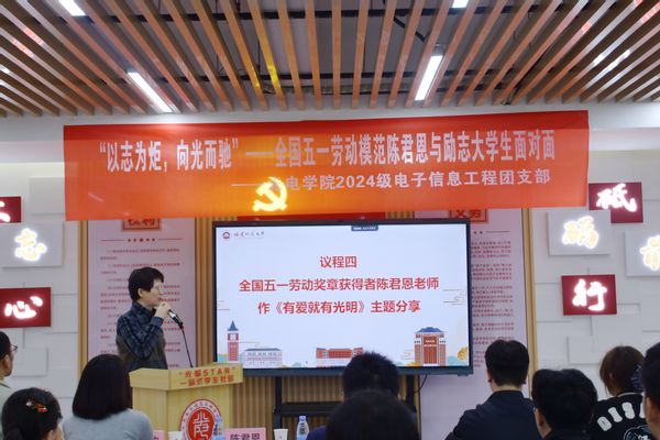 11月13日,光电与信息工程学院在李苑9“光耀 STAR”一站式社区,举办“以志为炬,向暖而驰”全国五一劳动模范陈君恩与励志大学生面对面活动。全国五一劳动奖章获得者、全国自强模范、福州市盲校高级音乐教师陈君恩,校学生工作部副部长吴志锋,学院党委副书记孙荔钦以及学生代表共同参会。