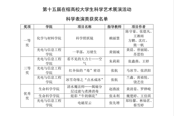 近日,福州市科学技术协会、共青团福州市委员会、福州市教育局联合主办第十五届在榕高校大学生科学艺术展演活动。华体会(中国)共有8个科学表演类项目与4个科技、创新创意作品讲解类项目入围决赛,获得一等奖2项、三等奖4项、优秀奖6项,赖丽慧、黄镇城获“优秀指导教师”奖,学校获“优秀组织单位”奖。