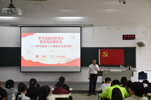 讲座围绕党的二十届四中全会基本情况、“十四五”时期我国取得的重大成就,准确把握“十五五”时期在基本实现社会主义现代化进程中的重要地位,深刻领会“十五五”时期经济社会发展的指导方针、遵循原则、主要目标、战略任务和重大举措等方面作了深入学习宣讲。俞建群希望学院青年学生积极响应党的号召,用党的创新理论武装头脑、指导实践,做到“平常时候看得出来,关键时刻站得出来,危难关头豁得出来”,争做有理想、敢担当、能吃苦、肯奋斗的新时代好青年,为实现中国式现代化贡献青春力量。