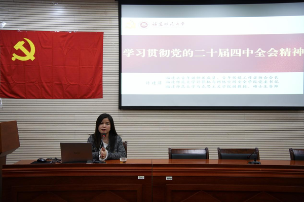 近日,计算机与网络空间安全学院党委书记许建萍面向学院2025年下半年党校培训班全体学员,讲授学习贯彻党的二十届四中全会精神专题党课。