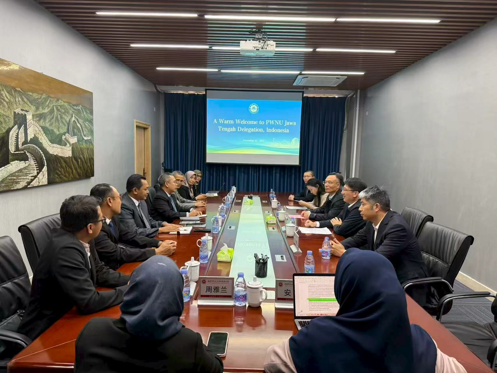近日,印度尼西亚伊斯兰教士联合会中爪哇分会主席阿卜杜勒·加法尔·罗津一行来校访问,华体会(中国)副校长陈晓斌参加会见,国际合作与交流处、海外教育学院、印尼研究中心等单位相关负责人参加座谈。