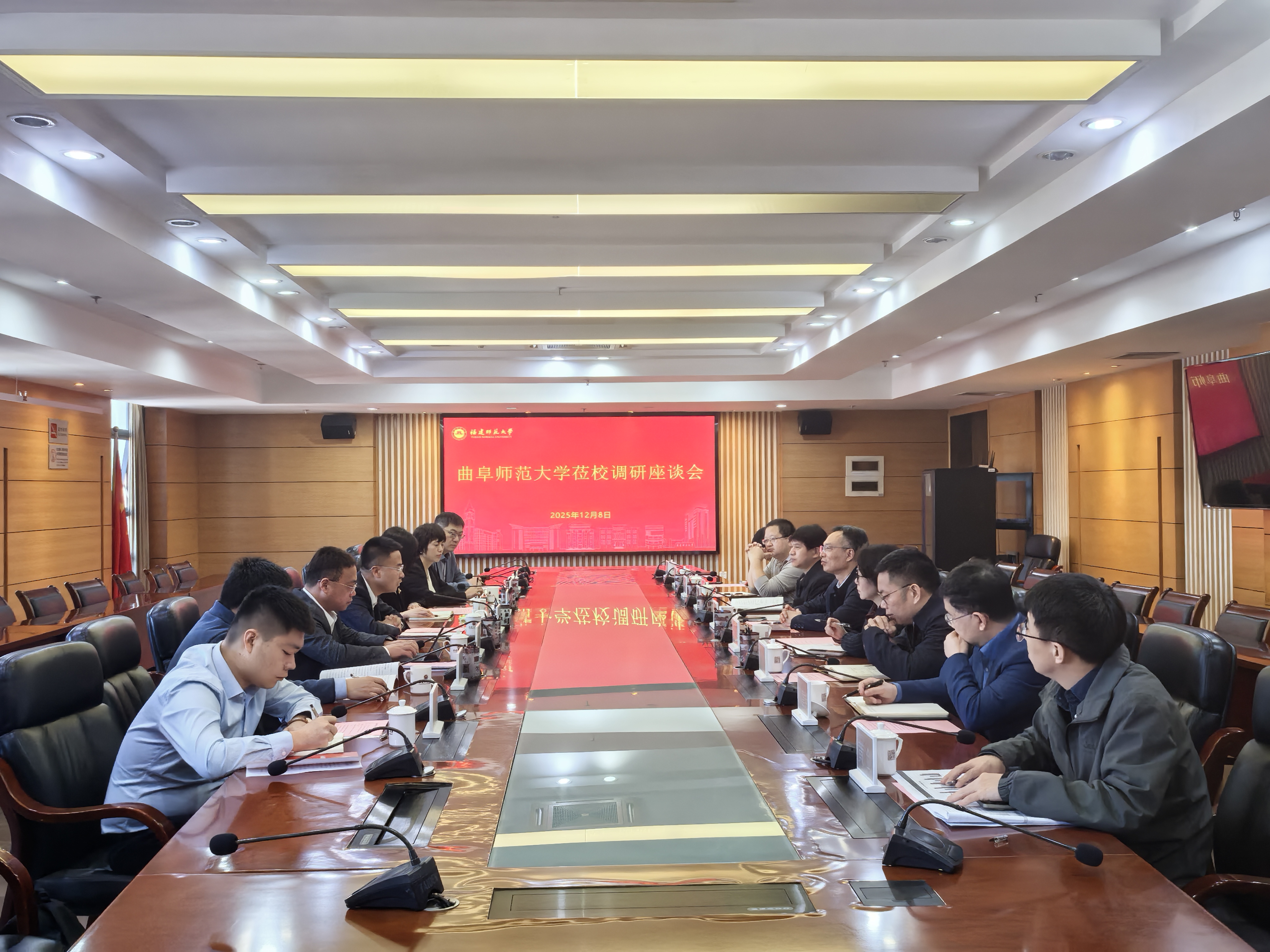 12月8日,曲阜师范大学副校长李登旺一行来校调研交流。副校长陈晓斌,社会科学处、科学技术处、发展规划处、研究生院、文学院、社会历史学院、教育学院等相关单位负责人参加座谈。会上,双方分别介绍了学校总体情况与办学特色,一致认为,“天下师范是一家”,两校同属师范院校,肩负着为党育人、为国育才的共同使命,合作基础扎实、前景广阔。双方参会人员围绕哲学社会科学实验室建设、科学研究、学科建设、人才培养及“十五五”规划编制等方面进行了深入的交流讨论。(社会科学处)