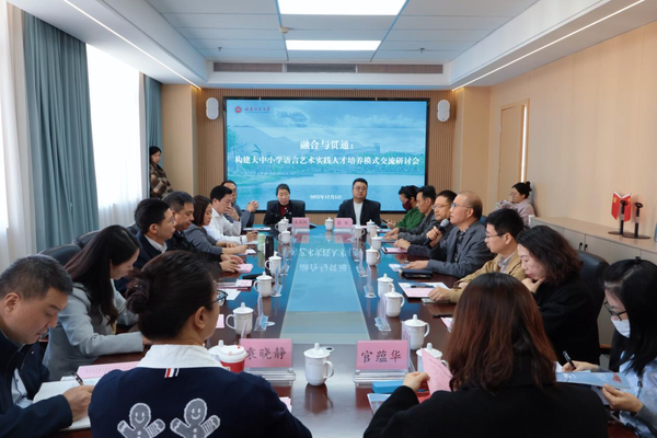 125日上午,“融合与贯通:构建大中小学语言艺术实践人才培养模式”交流研讨会在传播学院四楼会议室举行。