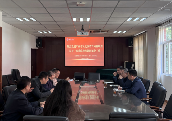 12月5日,广州从化区教育局局长何敏然一行来校交流调研就业工作。校学生工作部副部长吴志锋,马克思主义学院、文学院、外国语学院、社会历史学院、音乐学院、数学与统计学院、物理与能源学院等相关学生工作负责人参加交流。