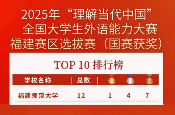外国语学院学子凭借出色的语言运用能力、扎实的跨文化交际素养与清晰严谨的思辨能力,从全国1537所院校超72万名参赛学生中脱颖而出,最终斩获1金4银7铜的佳绩,在福建省内高校省赛奖牌榜、国赛奖牌榜均位列第一。此外,学院共有三名选手赴京参加现场赛。