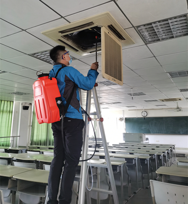 物业管理科已按照“环境清洁卫生为主、预防性消杀为辅”的原则,完成了对仓旗两校区的教学楼、学生公寓、行政办公楼等128栋楼宇公共区域的卫生保洁和全面消杀工作,正在对各类空调进行分批次清洗。