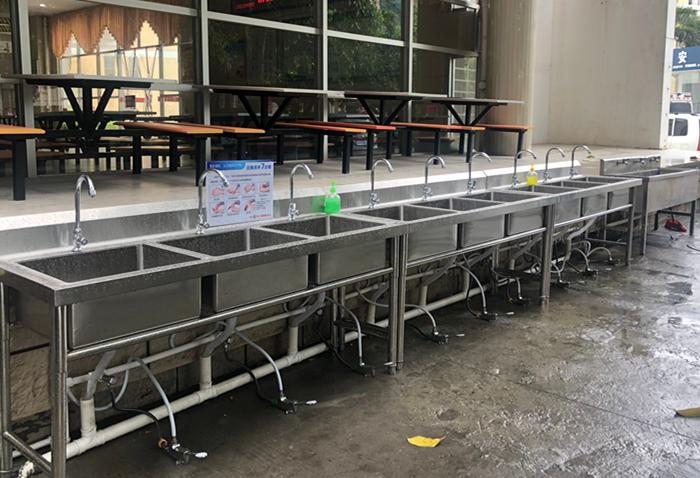 餐厅外增设流动水洗手设施。