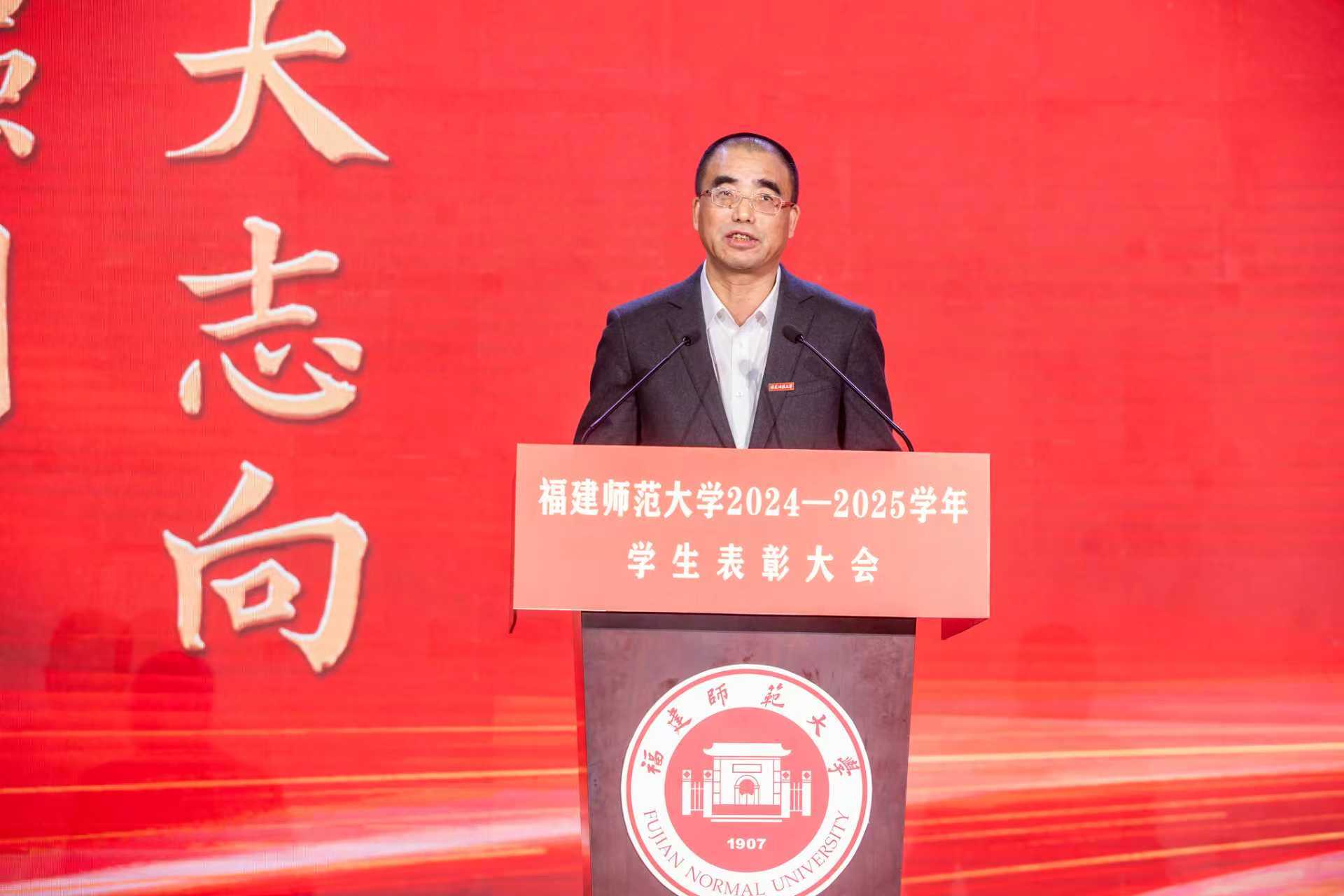 大会在雄壮的国歌声中拉开帷幕。校长郑家建代表学校向受到表彰的先进集体和先进个人表示热烈祝贺,向辛勤培育学生的全体教职工致以诚挚感谢。他充分肯定了一年来华体会(中国)青年学生在各方面取得的优异成绩,鼓励同学们以先进集体和个人为榜样,奋发拼搏、励志耕耘。同时,他围绕学生成长与发展,向全体学生提出四点希望:一要在坚定信念中锚定青春坐标,将个人理想嵌入民族复兴的历史经纬,勇闯科技前沿,扎根基层大地,传承文化星火,以个人的微光汇聚成中国式现代化的闪亮星河;二要在实践担当中淬炼过硬本领,勇于走出课堂的舒适区,投身创新攻关的最前沿、乡村振兴的第一线、社会服务的大舞台;三要在艰苦磨砺中积蓄成长力量,敢于自动选择“自找苦吃”,不囿于“小确幸”,不纠结“性价比”,在求真求知上下足“笨功夫”,在实践实干中坚持“苦功夫”;四要在笃行实干中书写华彩青春,不做夸夸其谈的“客里空”,要做起而行之的“行动者”,把远大目标落细为日常步履,成就自己丰沛充盈的人生。他强调,广大教职工要坚守育人初心,以教育家精神为引领,当好学生成长路上的引路人和同行者;全体学生要见贤思齐、勇毅前行,以福建师大青年学子自信之姿,在强国建设、民族复兴的伟大征程中贡献青春力量。
