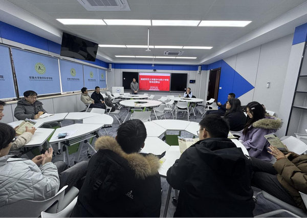 在安徽大学数学科学学院,双方分享了在学科发展、科研创新等方面的经验,并就潜在合作方向交换意见,安徽大学数学科学学院院长鲍炎红、副院长施敏加等参与交流。随后,举行人才招聘宣讲会。