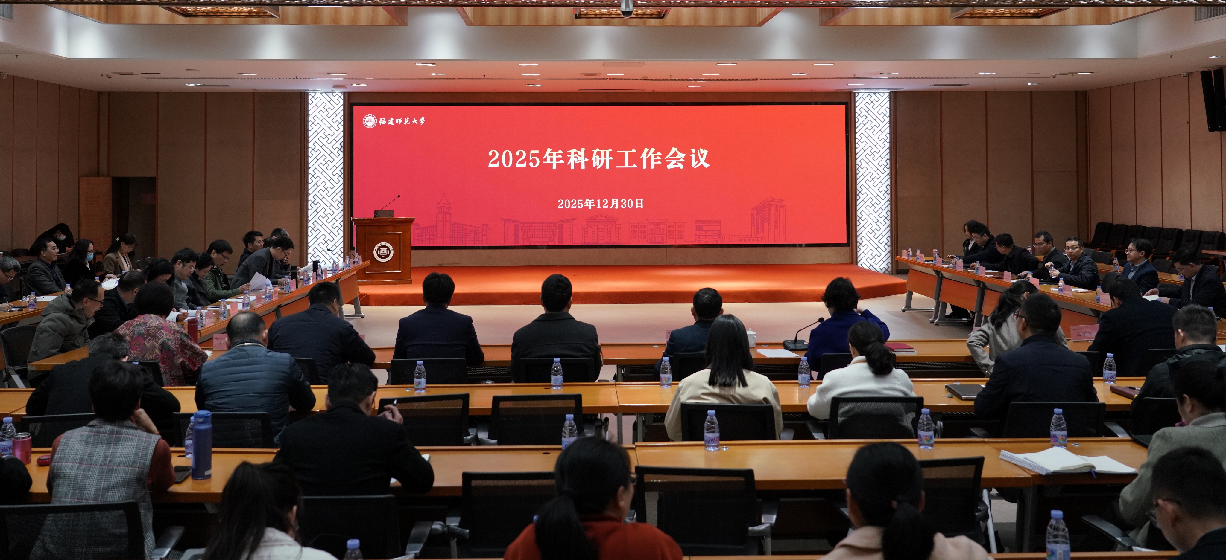 会议于12月30日在旗山校区宏达厅召开。副校长欧阳松应,科学技术处、社会科学处、产教融合发展中心全体同志,各学院党委或行政主要负责人、分管科研工作副院长、科研秘书等100余人参加。