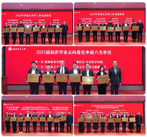 会议于1月7日在旗山校区宏达厅召开。校长郑家建,校党委副书记吴剑锋,副校长欧阳松应、方千华、陈晓斌,校毕业生就业创业工作相关部处负责人,各学院党委与行政主要负责人、分管学生工作负责人,2025届、2026届毕业班辅导员,2024-2025年度“高校毕业生基层就业卓越奖学金”获得者龚雅茜校友、校2025年毕业生基层就业卓越奖获奖者等受表彰先进个人参会。