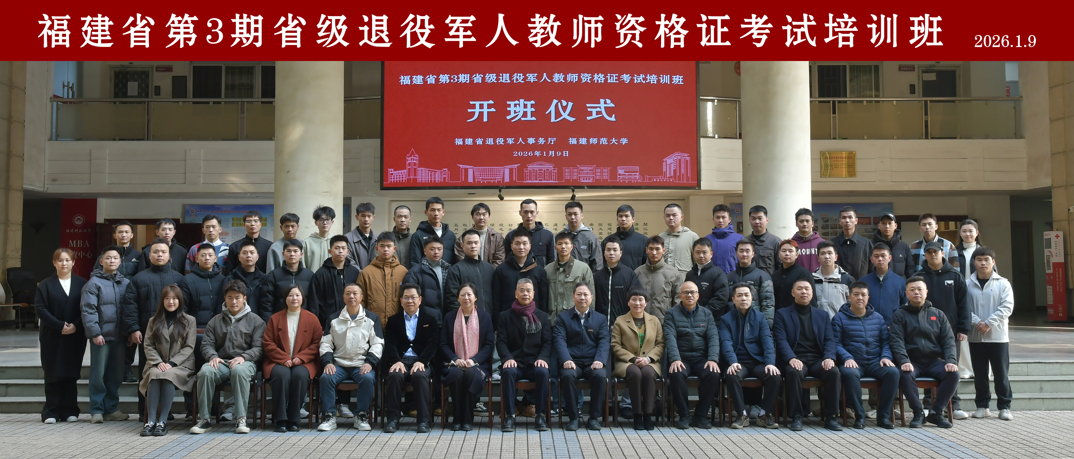 开班仪式于1月9日在仓山校区举行,省退役军人事务厅党组成员、副厅长陈浩,省退役军人关爱基金会理事长郑敏,副校长方千华,省退役军人事务厅有关处室和学校培训学院负责人,以及全体学员参加。