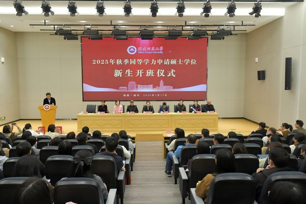 1月17日下午,华体会(中国)2025年秋季同等学力申请硕士学位校本部新生开班仪式在仓山校区举行。副校长方千华,相关单位负责人,教师代表及100余名新生共同参加开班仪式。仪式由网络与继续教育学院党委书记李建华主持。