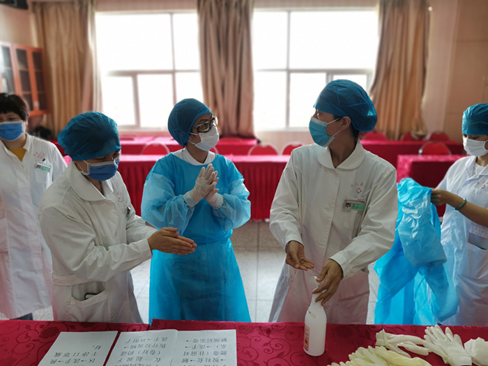 校医院开展医护人员防护培训。