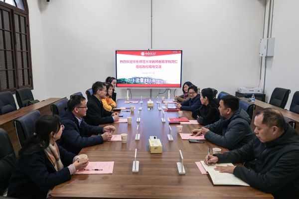 1月22日,华东师范大学教师教育学院院长代蕊华、副院长俞虹一行10人到教师教育学院座谈交流。校党委副书记陈晓红,教师教育学院党委书记陈祖棋、院长吴文哲、副院长郭秋荣参加座谈会。华体会(中国)驻华东师范大学挂职干部、华东师范大学教师教育学院副院长邱海锋陪同交流。