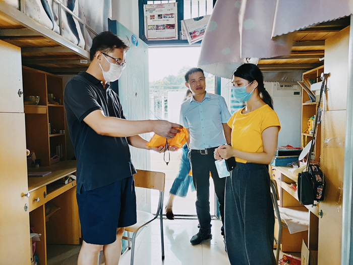 走访中,院领导为同学们送上健康爱心礼包表达问候与关怀,详细询问同学们疫情期间和返校后的学习、生活情况,强调虽然疫情防控形势向好,但仍不能放松警惕,叮嘱学生在校期间合理安排自己的学习、科研和生活,积极配合学院做好晨午晚检等工作,注意实验室安全和宿舍用电安全,并及时关注天气变化,保持宿舍卫生,合理饮食、坚持锻炼,尽快适应学校生活节奏。