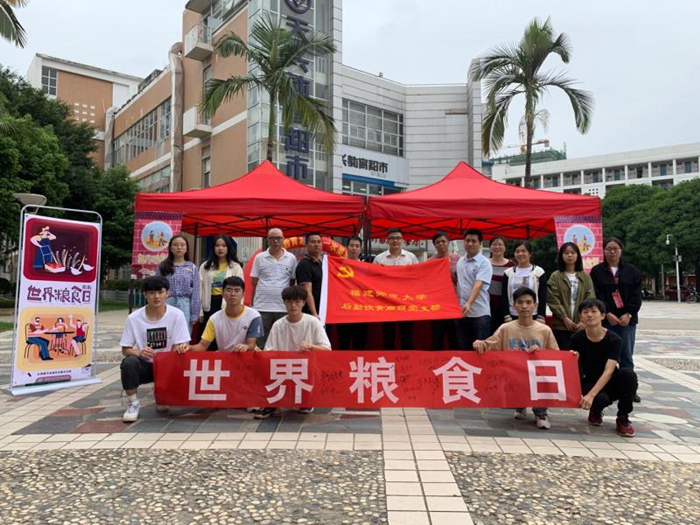 10月16日是第40个世界粮食日,后勤饮食商贸党支部联合校学生会学生权益部、生命科学学院2018级食品科学与工程团支部,围绕粮食安全系列宣传活动主题“端牢中国饭碗共筑全球粮安”,在共青团广场开展了一系列食品安全宣传活动。在活动现场,不仅有节粮宣传教育和食品安全教育的宣传展板,还有融合了食品安全和食品营养知识内容的“趣味飞行棋”游戏,活动吸引了众多学生参与。 (后勤管理处 后勤服务集团)
