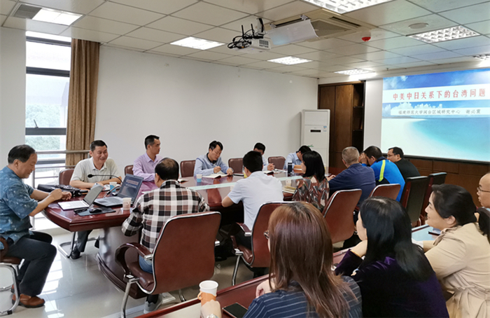 谢必震教授以中国国家安全态势为切入点,从中日关系与台湾问题、中美博弈与台湾问题、台湾问题是我们的核心问题等几个方面进行了阐述。整场讲座深入浅出,用详实的数据和丰富的内容,全面、立体地解读了当前中美中日关系下的台湾问题。