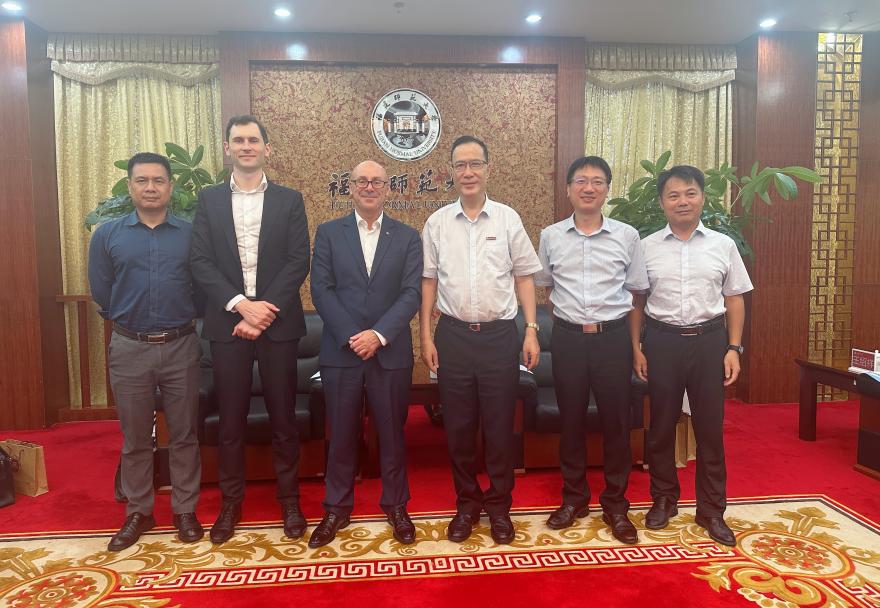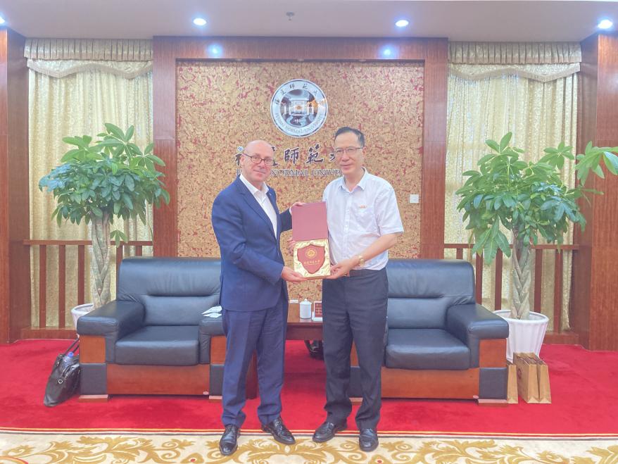 On June 26, Timothy Kendall, the Australian Consul General in Guangzhou, along with Vice Consul General Liam Mulvey and their delegation, visited Fujian Normal University. President Wang Changping warmly welcomed the guests, accompanied by representatives from the Office of International Cooperation and Exchange and the Fujian-Taiwan Regional Research Center.