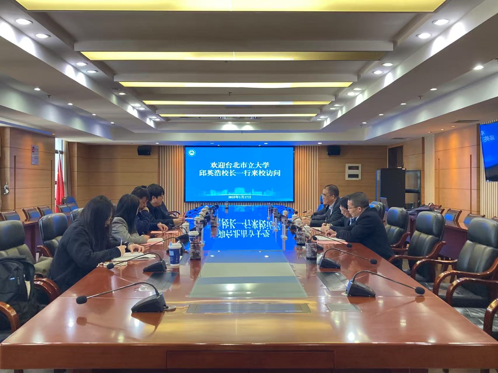 During the meeting, President Zheng Jiajian praised the University of Taipei for its outstanding achievements in discipline development, academic research, and innovative education. He expressed hope that this visit would strengthen communication, deepen friendship, and lay a solid foundation for future cooperation. He proposed enriching academic and cultural exchanges between faculty and students, leveraging the complementary strengths of both institutions. Additionally, he emphasized the importance of identifying new collaborative opportunities, exploring innovative models of cooperation, and deepening fields of cooperation to promote the integrated development of cross-strait education.