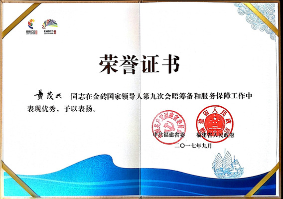 The Center’s servingthe BRICS Xiamen Summit was honored by the CPC Fujian Provincial Committeeand Fujian Provincial People’s Government, which was a recognition for the Center’s ability to serve local economic and social development, a full display of the Center’s research ability and service ability and will help push the Center towards becoming a national high-level think tank.