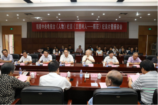 On September 10th, a feature documentary Establishing Morality & Cultivating Talents - Chen Zheng was broadcast on the program Peopleof CCTV-10 Science and Education Channel. On the afternoon of September 11th, FNU organized a documentary watching and held a symposium on it. The attendees included Chen Zheng, one of the first batch of experts and scholars with moralityand professional excellence in the philosophy and social sciences circle of the Publicity Department of the Central Committee ofthe Communist Party of China (CCCPC), the only winner of the world “Marxian Economics Award” in 2018 and former president of FNU, Prof. Li Jianping, chief expert of the Marxist Theoretical Research and Construction Project of the CCCPC, director of the National Research Center of Socialist Political Economics with Chinese Characteristics (Fujian Normal University), and former president of FNU, Prof. Pan Yuteng, deputy secretary of FNU Party Committee, heads of the relevant departments and divisions of FNU, alumni representatives, teacher and student representatives of the School of Economics, amounting to about 70 people.